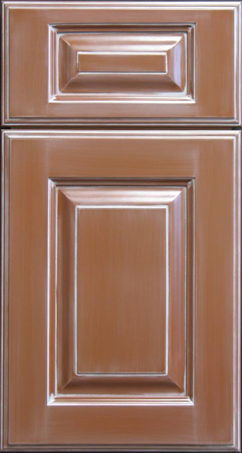 Wood Species: Select Western Birch Frame Profile: Ogee Panel Profile: Crown Outside Profile: Cove Plus Finish: Custom Brown Paint with White Pickling Custom Details: 2 3/4 inch frame.