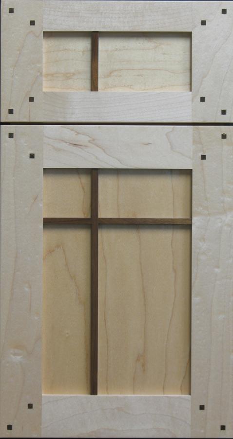 Wood Species: Eastern Hard Maple Frame Profile: Shaker Panel Profile: Flat Outside Profile: None Finish: Natural Custom Details: Walnut cross sticks with double square flush pegs